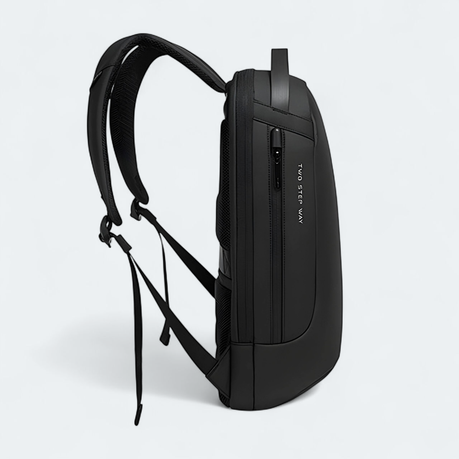 Backpack system: curved shoulder strap