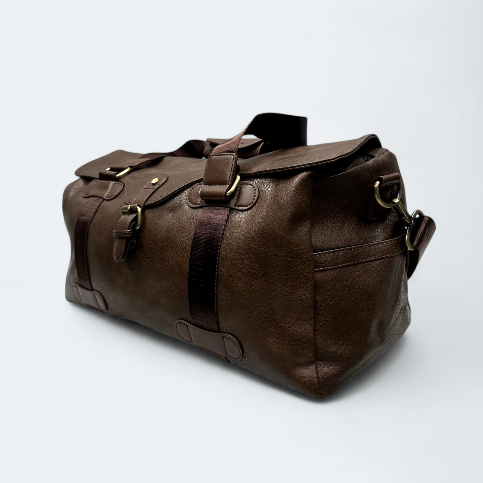 Smart Artificial Leather Travel Duffel With Shoulder Strap 3514 Chocolate
